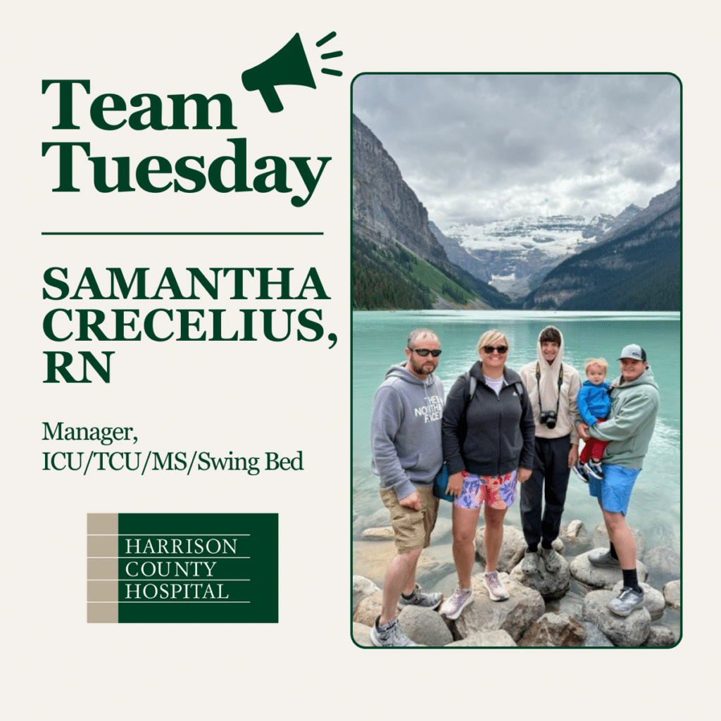 Kelly Wright, RN has been with Harrison County Hospital for 12 years. Kelly is a nurse in the Surgery Department. Kelly prepares patients for surgery and then after surgery is with them as they wake up, letting them know surgery is over and they are doing great!