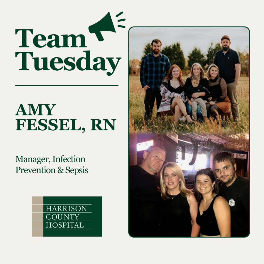 Amy is the Infection Prevention & Sepsis Nurse Manager and has been with Harrison County Hospital for 18 years. In Amy’s role, she helps protect patients, staff, and visitors at HCH by leading infection prevention and patient safety efforts that support high-quality care for our community. What Amy most enjoys about her career at HCH is working alongside our incredible HCH team/family for the past 18 years, knowing that the work we do here makes a difference in so many people’s lives in our community.